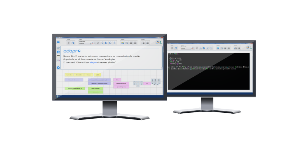 Adapro es un procesador de texto multiplataforma y multiusuario, adaptado a personas con diversidad funcional como la dislexia o el autismo. Su interfaz adaptada, transparente y configurable proporciona un entorno que inspira la seguridad suficiente en el usuario como para mantener su atención.
