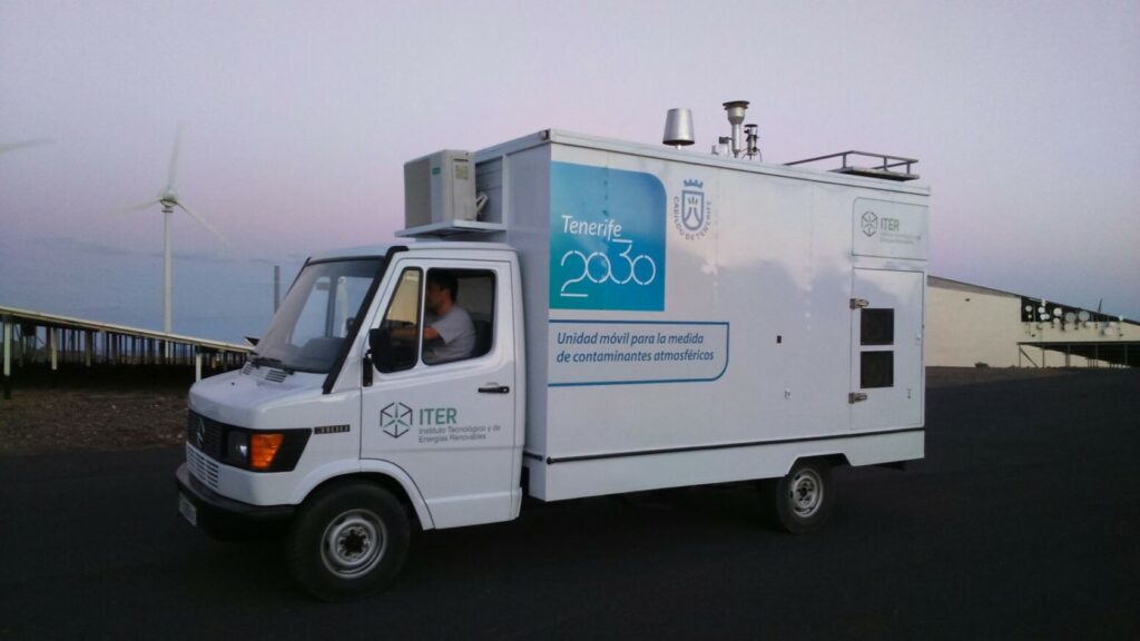 - Instalación de una unidad móvil para el seguimiento y medida de contaminantes atmosféricos (SO2, CO, O3, CO2, NOx y partículas PM10) en los Institutos de Enseñanza Secundaria seleccionados de la Isla de Tenerife por un periodo de 7 días a lo largo de una anualidad.