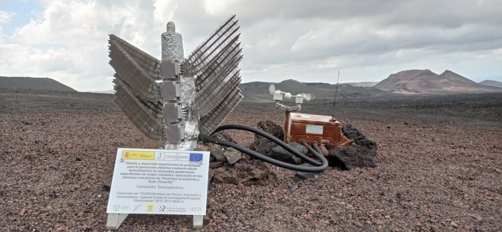 La energía geotérmica convencional se basa en perforar sondeos de 1500-2500 m de profundidad para obtener vapor a temperaturas entre 100º y 300 ºC capaces de generar electricidad mediante el turbinado del fluido generado. En Canarias y en muchos otros sistemas volcánicos activos, estas temperaturas se encuentran ya en superficie, pero nunca se ha intentado aprovechar la termoelectricidad para aprovechar este importante potencial calorífico. Las anomalías geotérmicas superficiales de la zona de Timanfaya en la isla de Lanzarote son las más importantes del mundo, hasta el punto de registrarse 200 ºC en superficie y 600 ºC a 10 m de profundidad en la zona de Islote Hilario.