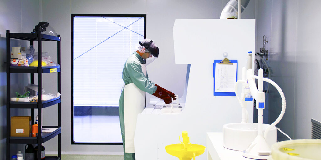 The ISO 7 clean room (class 10,000) has a total surface area of 65m² and is equipped with the following: