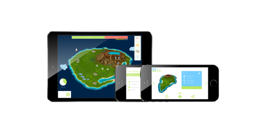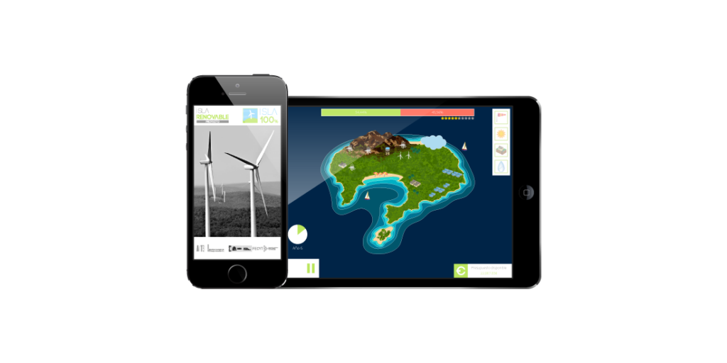 Isla 100% es una aplicación multiplataforma para dispositivos móviles que, en forma de juego, expone la importancia del uso de las Energías Renovables en los territorios insulares.