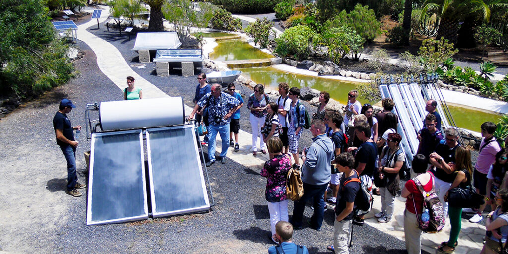 - Dispositivos de energías renovables, es decir, sistemas y componentes de energías renovables (paneles solares, palas de aerogeneradores, etc.), junto con carteles que describen su funcionamiento y algunas de sus características. Algunas de estas exposiciones son interactivas (mediante interruptores, palancas, etc.) para que los visitantes puedan acercarse más a estas tecnologías y comprender mejor su funcionamiento.